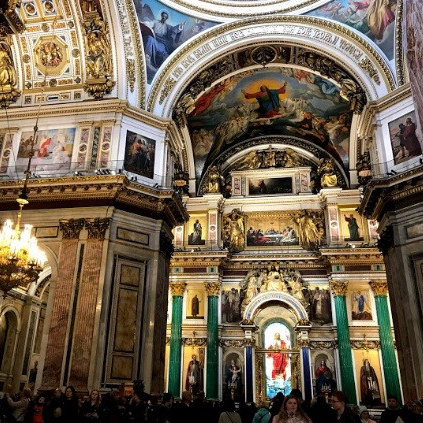 1991年のソビエト連邦解体までは革命家『キーロフ』という名前が冠されていましたが、現在はマリインスキーの名称が復活しています。 4月12日はプティパの原振付を復活させ『フローラの目覚め』が初上演されました。今回のツアーでは4月18日『バヤデルカ』、と4月20日に『ドンキホーテ』を鑑賞することが出来ました。初日は前日の夜ペテルブルクに到着のため若干時差・疲れの影響もありましたが存分に楽しみました。 スケールの大きな舞台は圧巻で、特に良かったのは、フェッテ(片足を軸に外回りにくるくる回るです)です。とてもすばらしく、観客からの拍手が鳴り止まず、指揮者(コンダクター)は粋な計らいで、アンコールで再度もう一度フェッテのために演奏をしました。こういったアンコールは初めての経験でとても楽しみました。 今回のツアーはバレエを楽しむことが一番の目的の小グループ旅行でしたので、普段なかなか行くことの出来ない「ライオン橋」や「銀行橋」、「ファベルジェ博物館」見学をしたり、ランチはビュッフェスタイルのカフェ(食堂)で各自好きなものを注文してロシア料理も楽しみました。 訪問するたびに綺麗になっていくサンクトペテルブルグ。公園や道を掃除している人もたくさん見かけ、観光都市としての自覚を感じさせる政策です。古いものを大切に守る文化と芸術の都サンクトペテルブルクは今後も美しく発展していくことでしょう